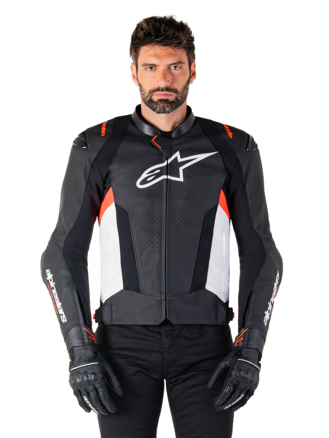 The Missile v3 Leather Jacket is a premium racing sport jacket derived directly from MotoGP, incorporating advanced levels of racing technology to deliver premium protection performance, comfort, and style. The jacket offers leading protective technologies, including seamless DFS, phantom black shadow protectors in TPU on the external shoulders and Alpinestars Nucleon PLASMA Pro Level 2 armor on the shoulders and elbows. Engineered to deliver the highest level of active race protection; the jacket is Tech-Air® Ready and is Tech-Air® Compatible with the new Tech-Air® 7x Airbag System. The Missile v3 Leather Jacket’s fresh modern, sport design offers a striking racing-inspired aesthetic – the perfect racing sport jacket for riders looking for high level racing technology.